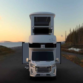Para llegar de planta baja al primer piso, el vehículo cuenta con ¡ascensor!.Sobre la cabina del conductor, el vehículo de lujo cuenta con una litera, mientras que en la parte trasera tiene una cocina, además hay espacio para un sofá en forma de L. Asimismo, el vehículo dispone de una heladera, un lavadero, y un baño con ducha.